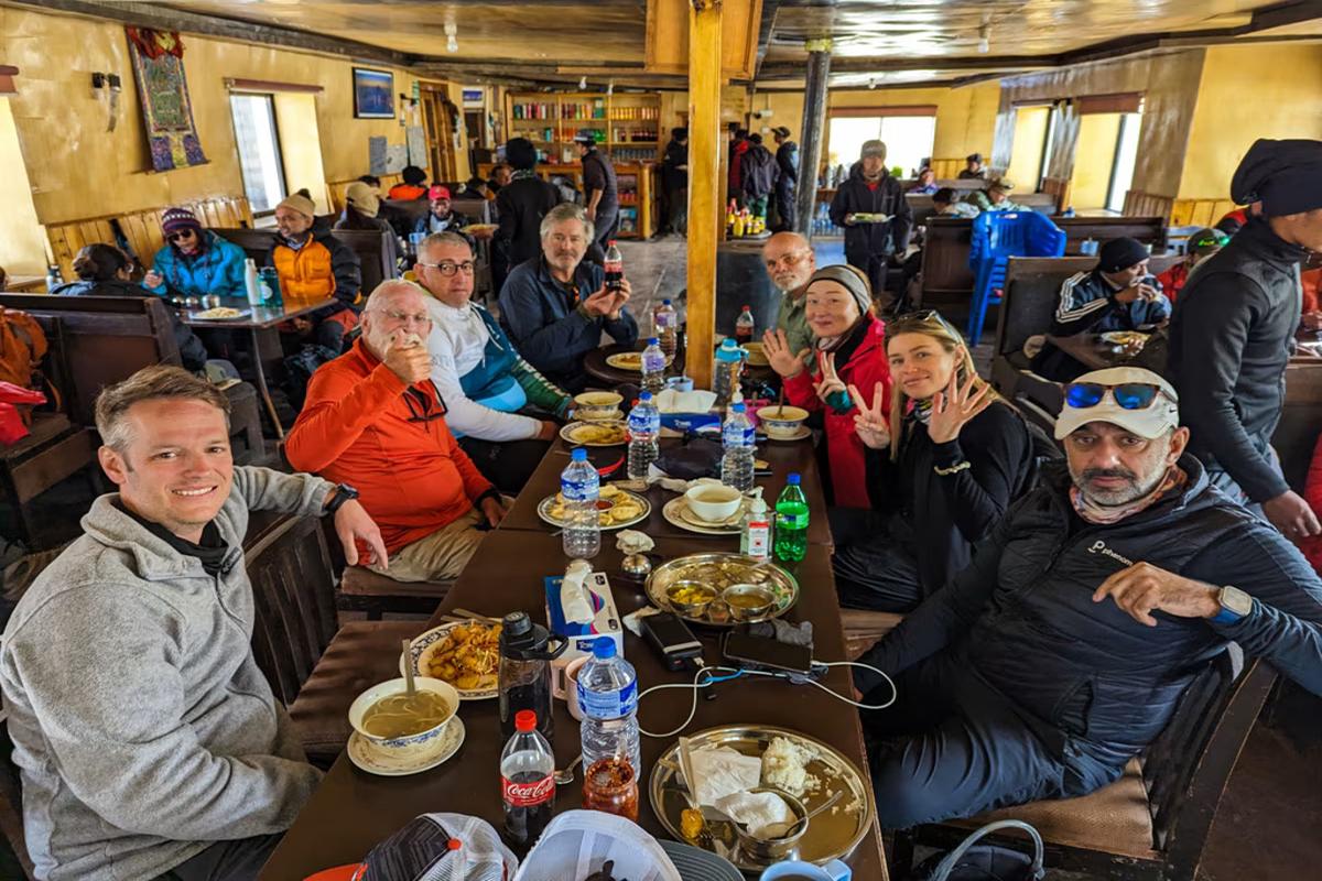 During the trek, you’ll stay in simple, family-run mountain lodges that offer a warm insight into authentic Sherpa hospitality. While accommodations are basic, we carefully select cozy and comfortable lodges to ensure a pleasant stay. As you climb higher, bathrooms are often shared, and hot showers are available, though not always recommended due to the cold weather. Enjoy freshly prepared meals along the way – we suggest hearty, high-carb dishes to keep you warm and energized.